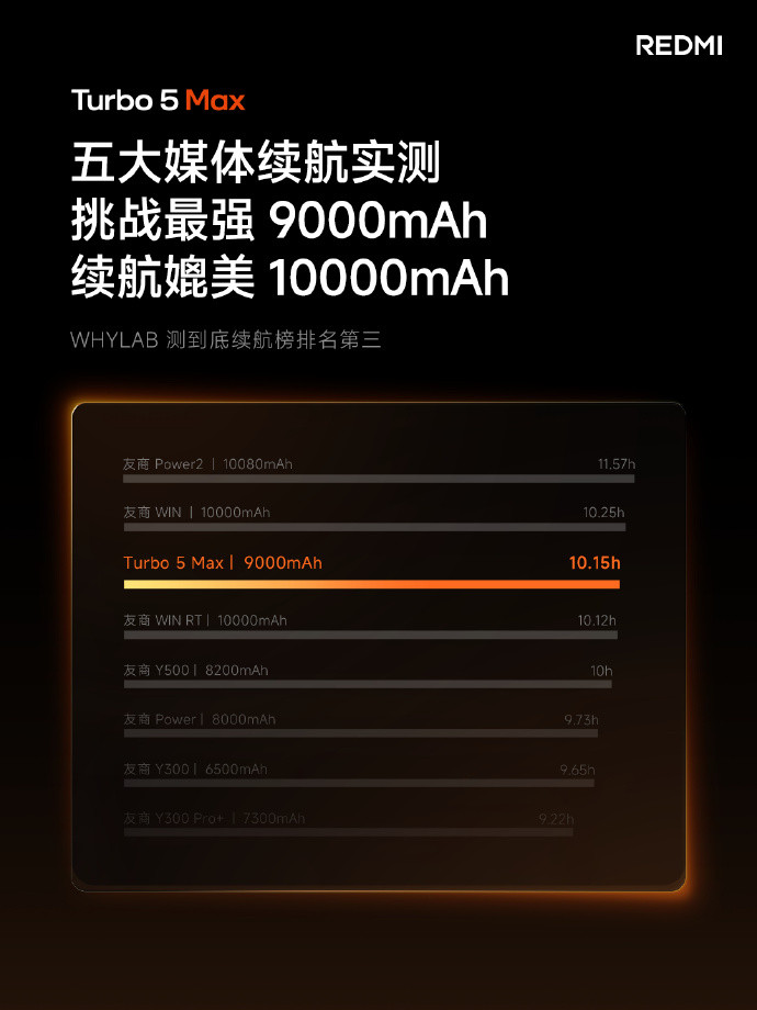 在续航上,Turbo 5 Max更是给出了极致Max的表现。Turbo 5 Max搭载目前小米机型中最大的9000mAh电池,搭配天玑9500s本身就出色的能效控制,这下真没续航焦虑了。