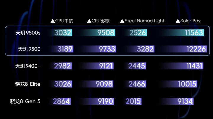 Redmi Turbo 5 Max搭载的是来自联发科的天玑9500s,从命名上也能看出来,这是一颗不折不扣的性能芯。