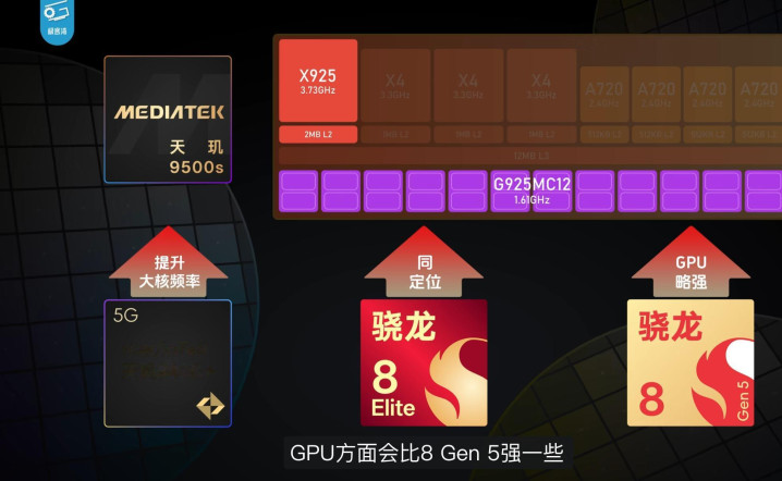 GPU一直是天玑的强项,天玑9500s的GPU给到了最高12核的Immortalis-G925,熟悉芯片的芯片的小伙伴应该知道,这也是旗舰级规格,对游戏性能和能效有基础保证。